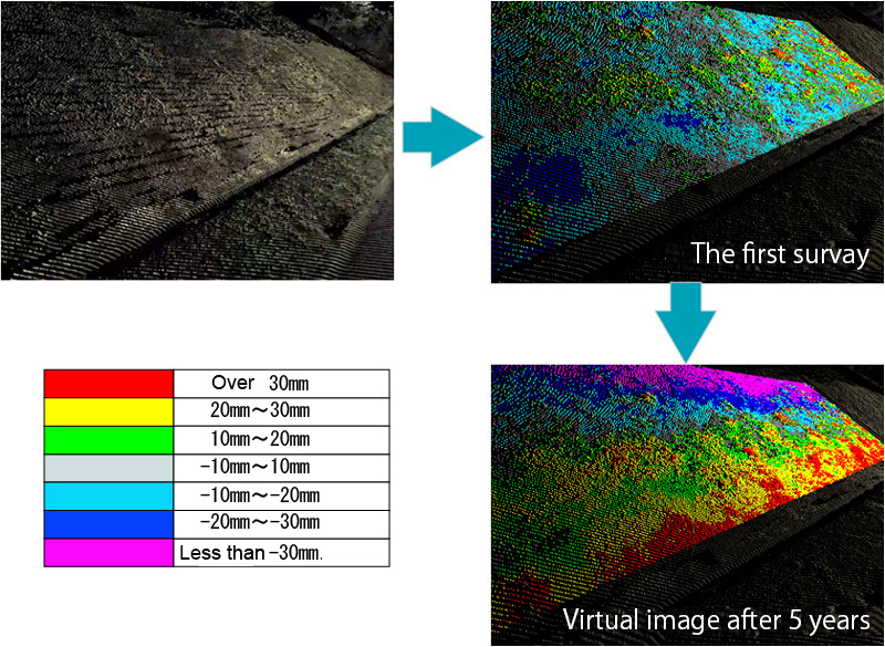 By using two different time period 3D cloud data on InfraDcotor, deformation and movement can be confirmed.